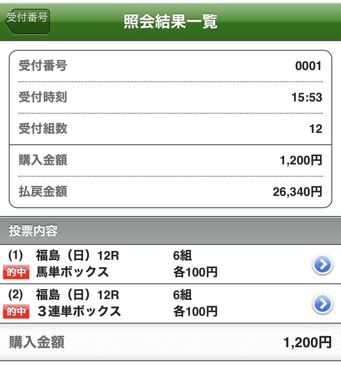 2万馬券が2本も当たりました